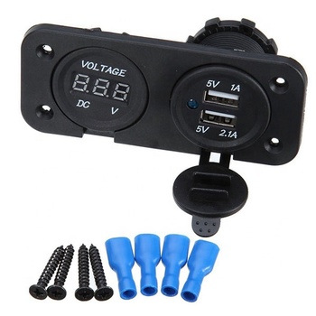 Adaptador de cargador y voltímetro a prueba de agua Dual USB 2.1A